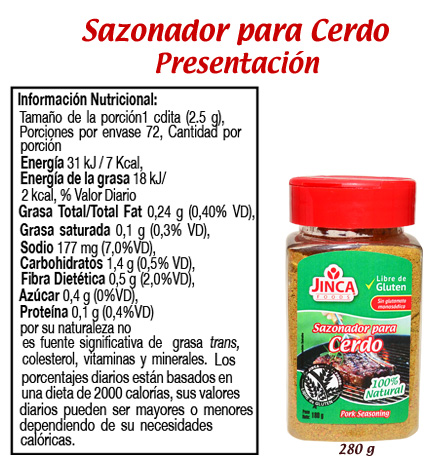 • El sazonador para la carne de cerdo da un aroma y un sabor deliciosos. Agregue alos diferentes cortes de cerdo antes de cocinar.